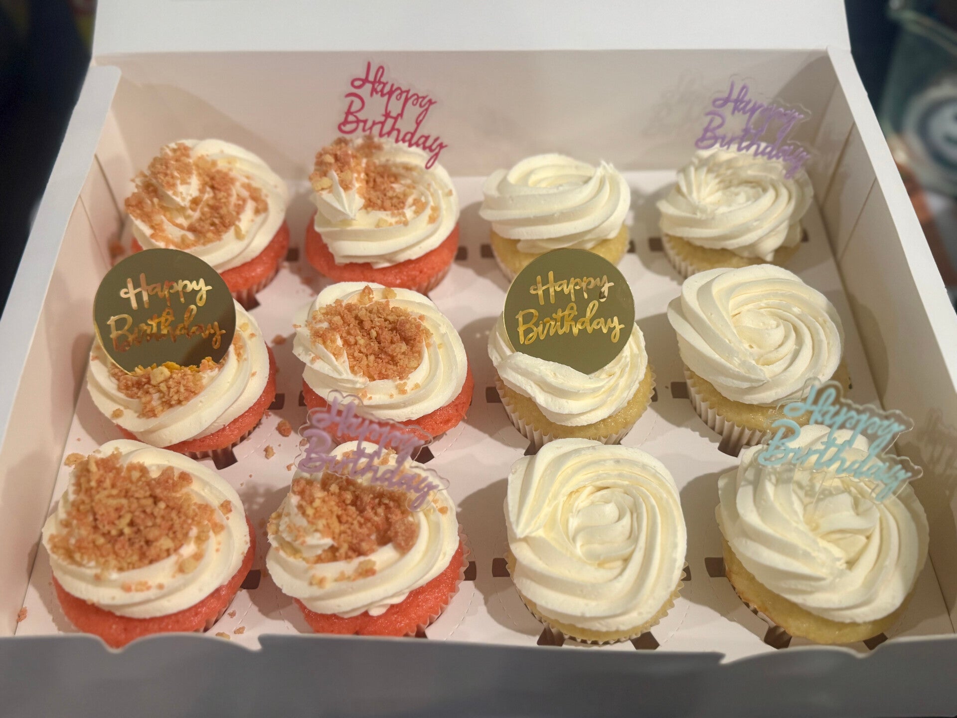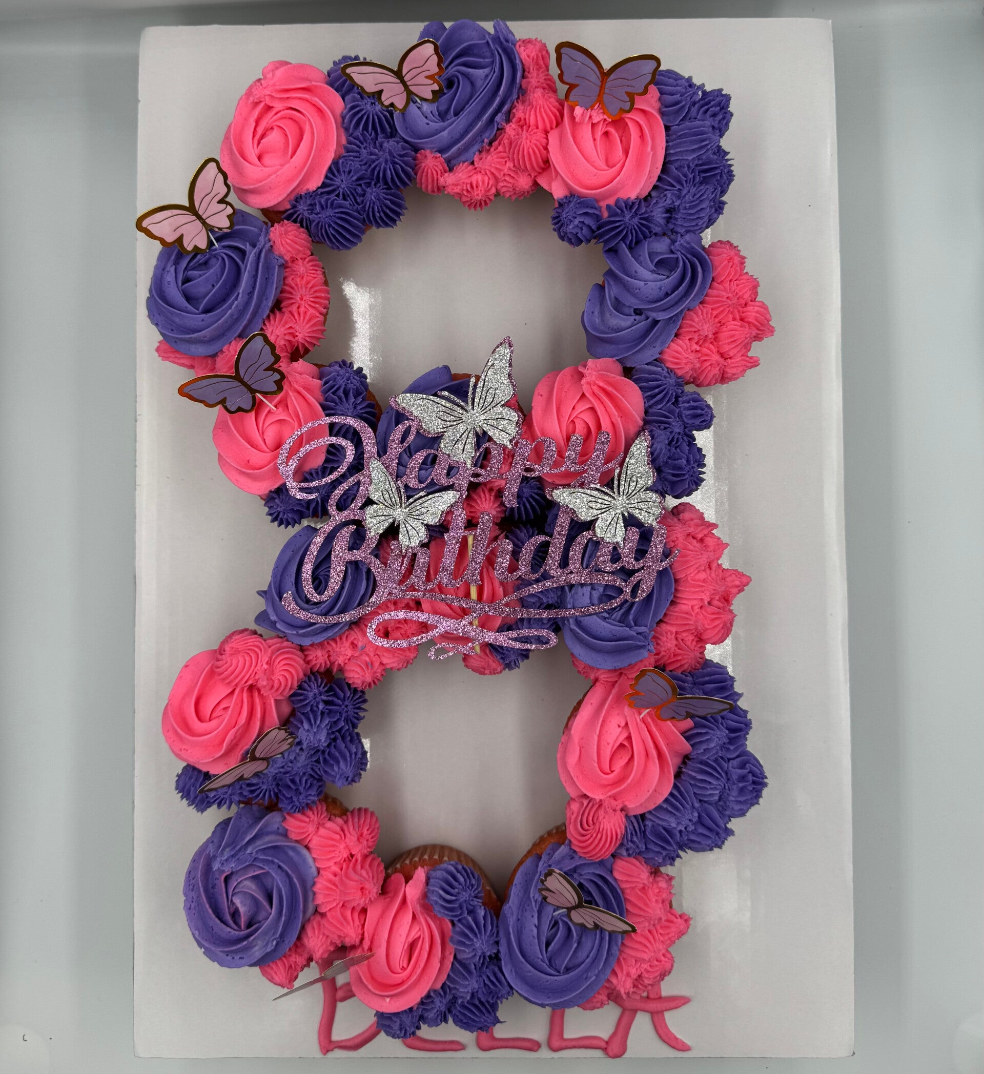 Pink happy birthday cake box with flowers